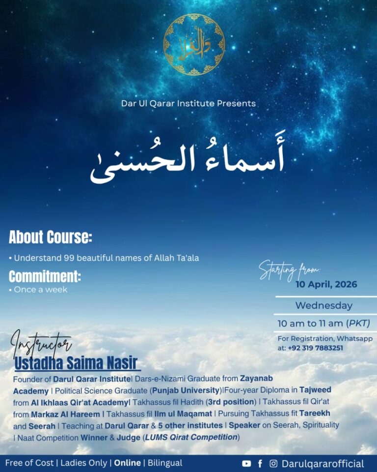 This institute is led by Alima Saima Nasir, providing credible guidance in Quran and Hadith through interactive live sessions.