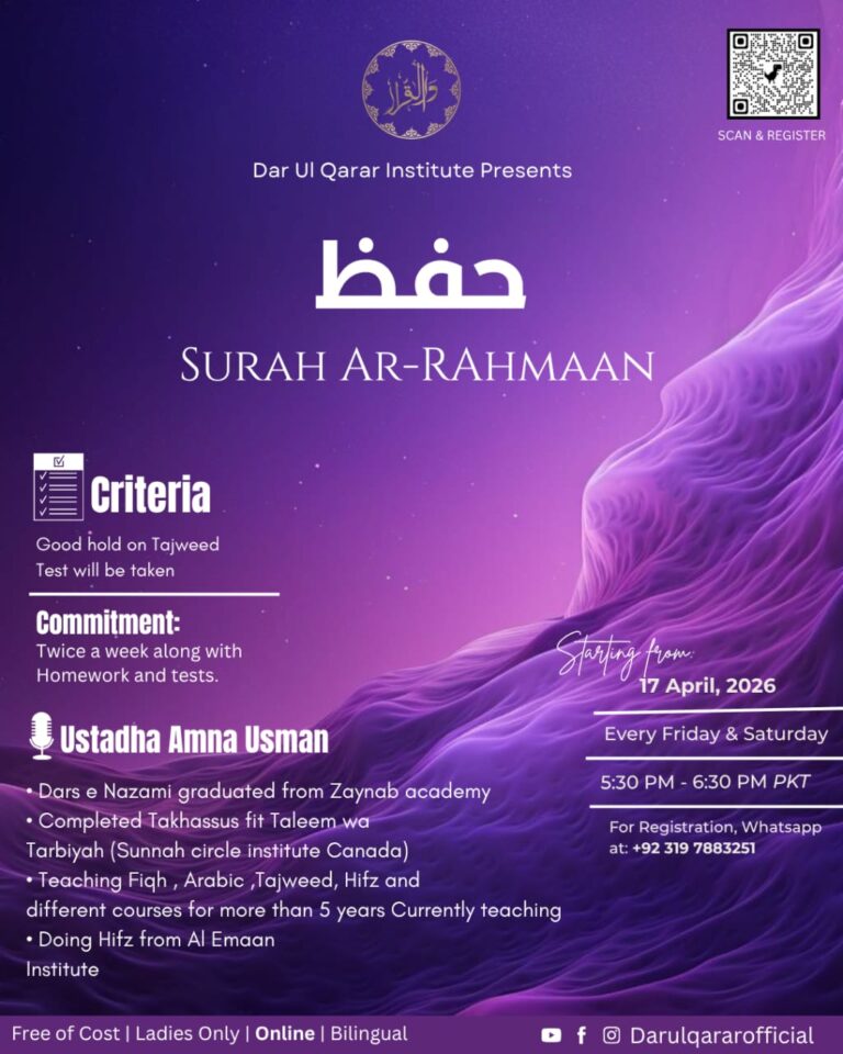 We offer various sessions focused on character building, Fiqh, and life reformation. Each course is designed to provide practical Islamic guidance for sisters in a secure, virtual environment.